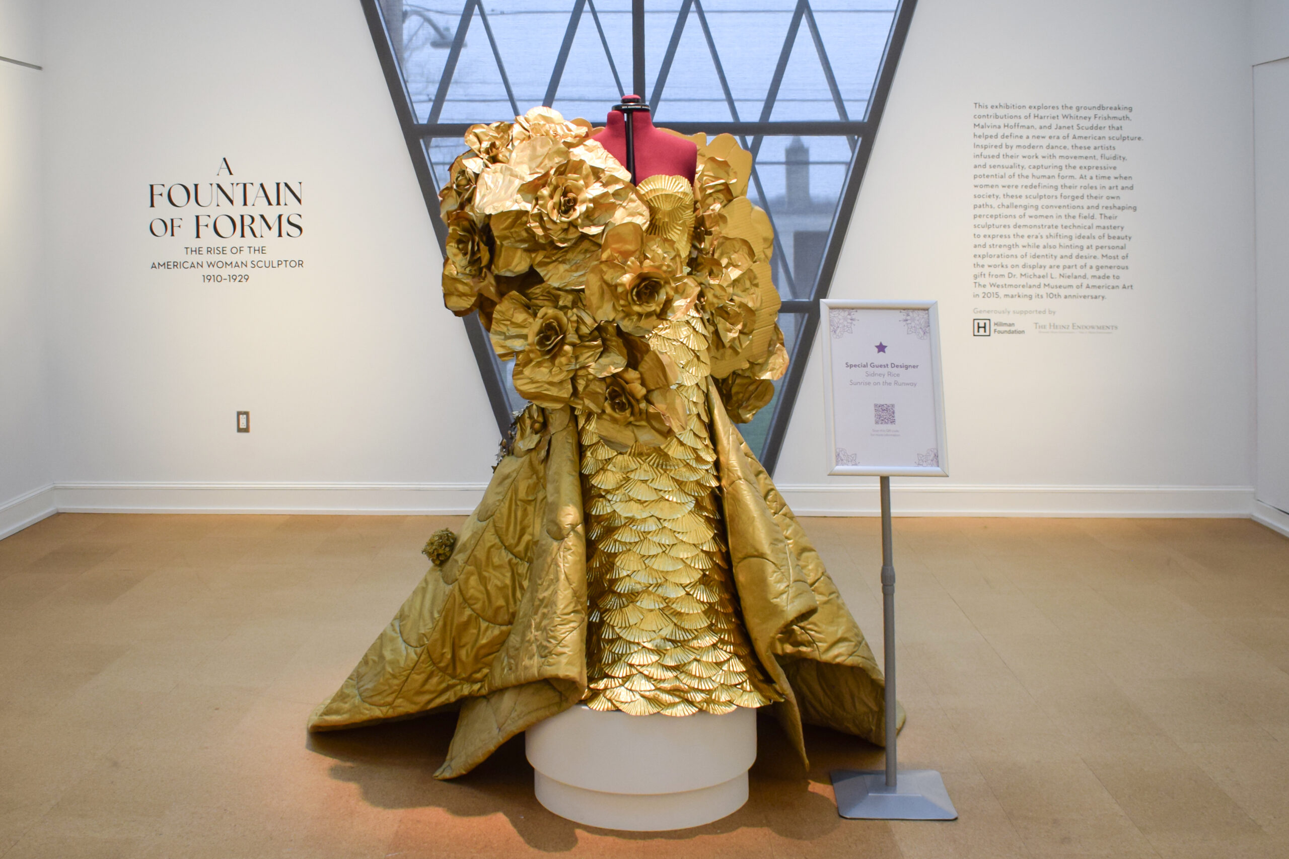 Sidney Rice’s golden floral gown is also on display.